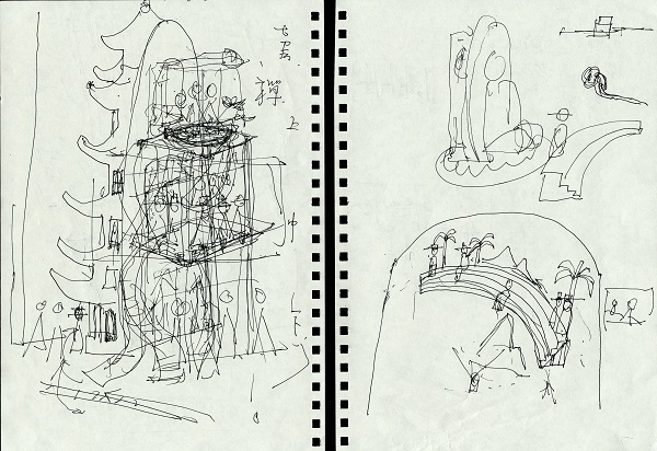 另一块是“生命之塔”则是远离皇宫的,平民百姓心中的一个祥物,一个心灵支撑点的建筑,有着园林气息,在上层有着戏台,再上层可以参禅修行。这些东西构成一个对外部世界的象征性的构建。