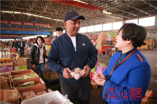 5月1日清晨8点,当九鼎农产品批发市场还处在繁忙前的寂静中时,一个果品批发商熟悉的身影——九鼎盛和果品经营管理有限公司副总经理吾买尔·吾斯曼已经在市场里忙碌了起来,查看车辆的停放情况、检查垃圾清扫情况……