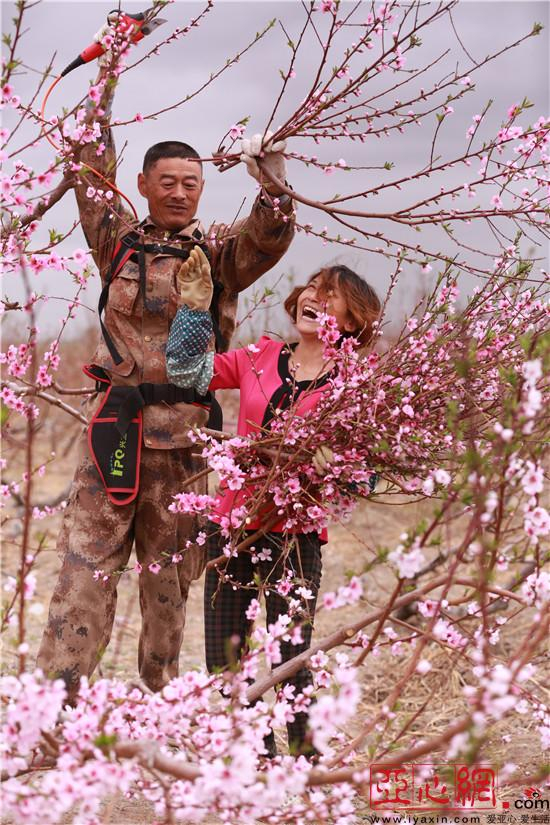 5月1日,一〇四团第五届桃花节在该团“大话西游万亩桃园”基地浪漫开幕,吸引了万余名市民前来赏花游玩。在师劳动模范李勇的40亩桃园里,他和妻子正在给桃树修枝。桃园里,前来赏花的游客络绎不绝。