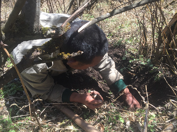 4月9日,在山上移栽野生天麻中,何清林发现很多快成熟的天麻被冻坏了,他懊悔不已,自责“这些都是去年漏挖的”。何清林表示,天麻怕冻,如果冬天下雪覆盖就还好,否则很多会被冻坏。