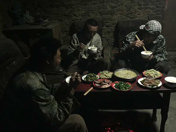 在山上,何清林一家吃两顿,因体力消耗大,他们会吃点腊肉。因记者来访,这一晚他们特意加了餐。