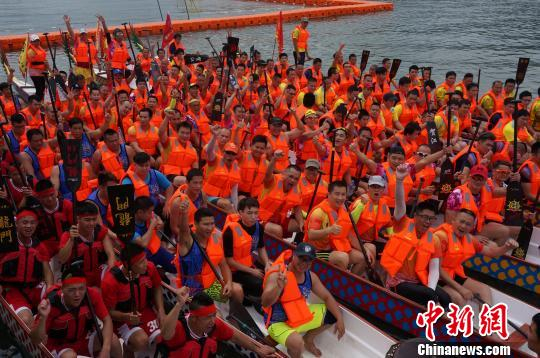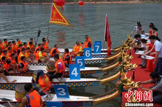 图为桂粤龙舟争霸赛参赛队伍。 赵琳露 摄