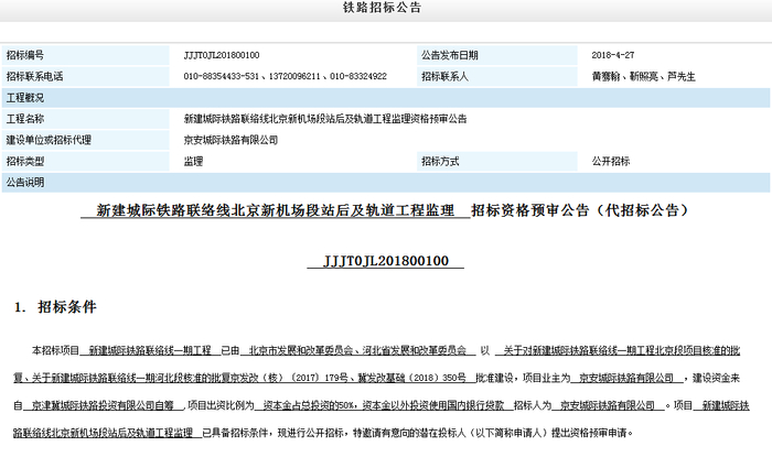 连接北京与廊坊的城际铁路建设进展一直备受关注,目前北京段部分工程已经开工,廊坊段进展如何呢?近日《新建城际铁路联络线北京新机场段站后及轨道工程监理 招标资格预审公告》发布,廊坊这一段具体走向,站点位置以及开工日期等都有披露,此外城际铁路联络线在新机场如何换乘也明确了!