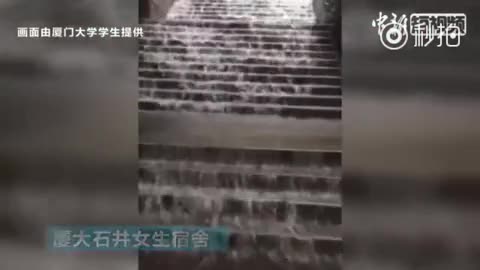 视频:厦门遭遇特大暴雨突袭 厦大楼梯变瀑布