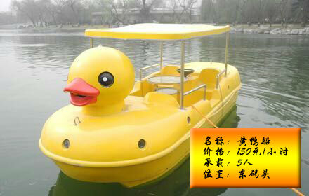 脚踏船:四人船押金200元,每小时收费60元;六人船押金300元,每小时收费120元。