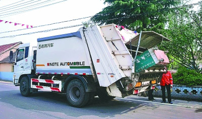 山东青岛市即墨区的环卫作业车在收集垃圾。光明图片