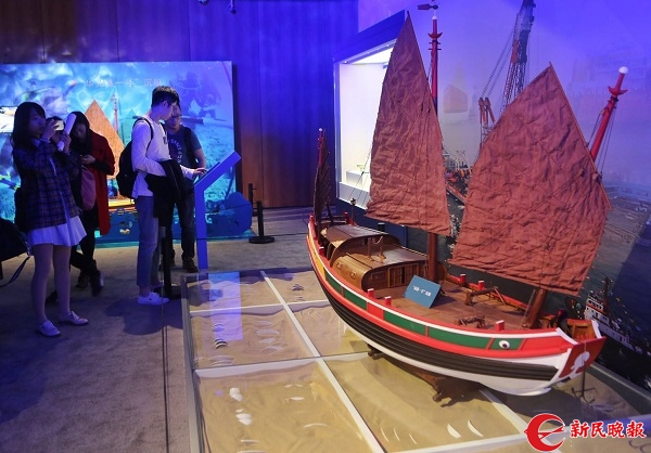图说:“南海一号”沉船模型及模拟打捞瓷器场景 新民晚报记者 周馨 摄