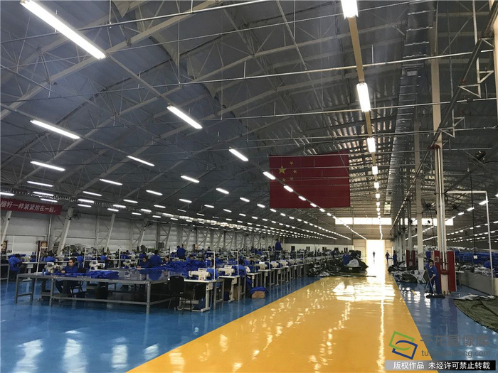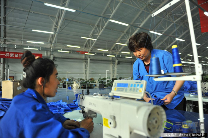 新疆京和纺织科技有限公司生产车间中,数百名各族职工正在紧张有序的进行服装加工。千龙网记者张博摄