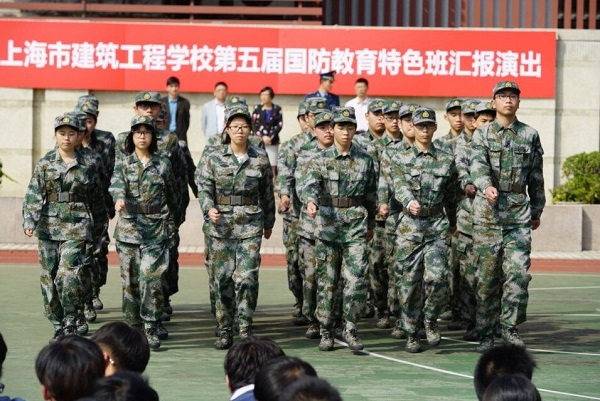 雷打不动的活动,不仅培养了学生的家国情怀,也成为学校“文化育人”的一大特色。在教学楼中行走,你会看到很多班级门口悬挂着“国防教育特色班”的标牌。每年学校都会在新生班级中发展国防教育特色班,把爱国主义教育根植于国防教育,落实到特色班级创建和学生行为规范养成中。教官进校园、军营一日游、学生自训检阅、东方绿洲素质拓展等,通过学校和部队的合作,将国防教育融入学生校园生活的方方面面。学校国防陈列馆的建成,丰富了学生学习国防知识的途径,学校国防教育也被评为“2014年上海市中职校园文化特色品牌项目”。