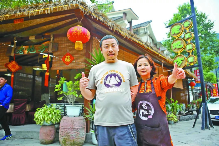 胡良兵和妻子在映秀小镇开了一家饭店,日子过得红红火火。