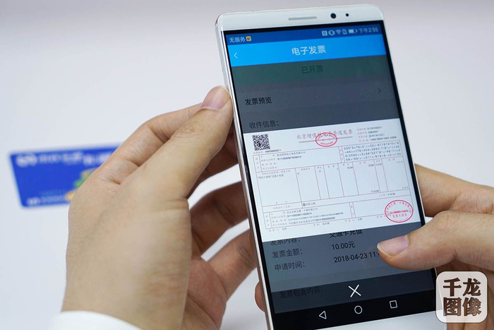 5月10日起,北京市政交通一卡通公司正式试点推出电子发票服务,首期将面向除公交、地铁渠道外的所有线上及线下充值业务开放办理,有发票需求的用户可通过北京一卡通App在线领取。图为一卡通公司工作人员展示电子发票。一卡通公司供图 千龙网发
