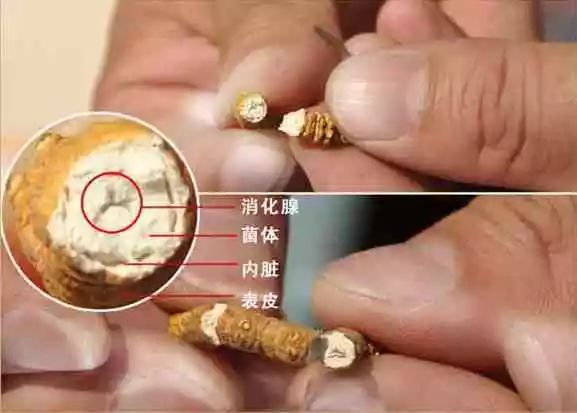 不法商贩会将一些外观像冬虫夏草的昆虫晒干后,头部插入其他干草冒充冬虫夏草。