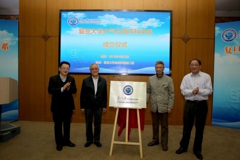 复旦大学副校长周亚明出席成立仪式并致辞。周亚明宣布大气与海洋科学系成立,并与中国科学院院士、大气物理研究所曾庆存,中国科学院院士、国家海洋局海洋二所苏纪兰,上海市气象局局长董熔共同为复旦大学大气与海洋科学系揭牌。
