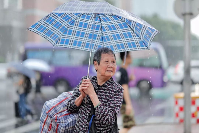 5月9日清晨大雨中的人们。广州参考·广州日报记者 陈忧子摄