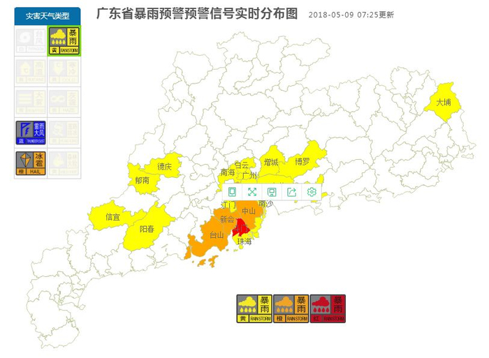 广州八区暴雨黄色预警生效