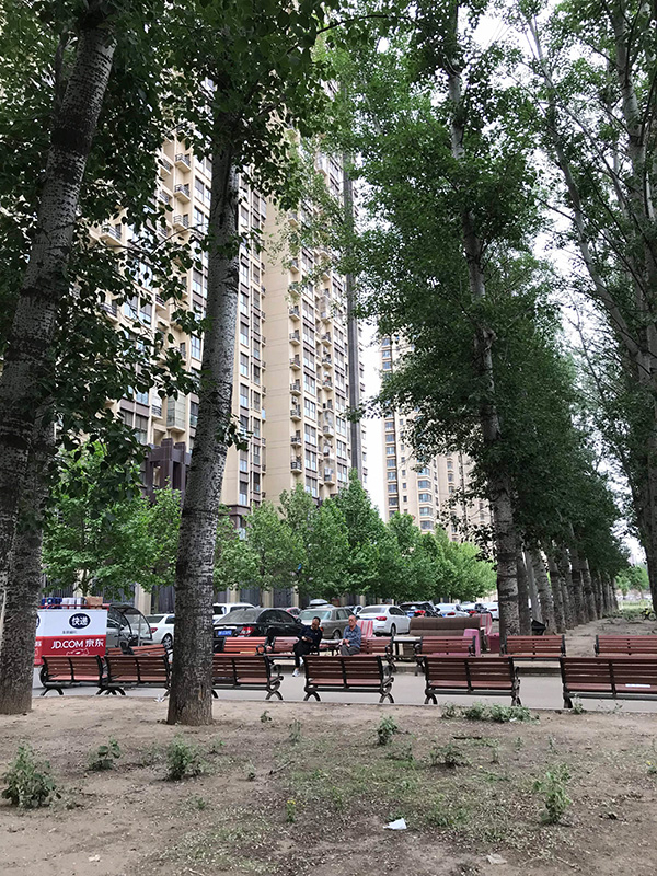 管庄的回迁楼下,有一块很特殊的空地。那儿有几棵大杨树,树干参天。据说这是回迁居民们和开发商斗争胜利的硕果,否则早被砍掉通路了,后来他们提起这事就一脸自豪。小树林下面安放了一些座椅,供人休息,后来就成了文艺园地。