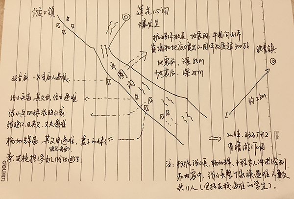 “豆花饭馆”到映秀小学这段约1公里的路,张小兵走了2个多小时。