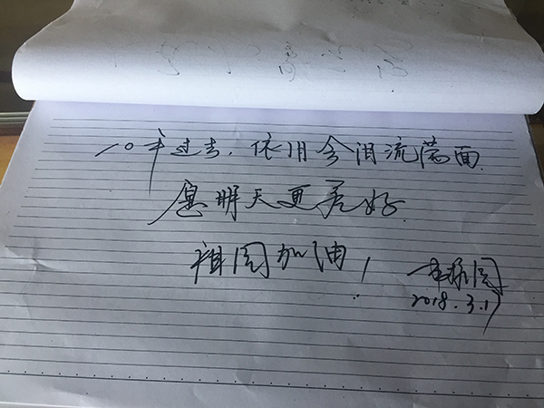一名游客参观完映秀镇的震中纪念馆后,在留言本上写道:“10年过去,依旧会泪流满面”。