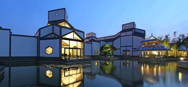 新馆色调以传统的粉墙黛瓦为元素,给江南建筑符号增加了新的诠释内涵。在建筑构造上,屋面形态的设计突破了中国传统建筑“大屋顶”在采光方面的束缚,玻璃、开放式钢结构可以让室内借到大片天光,同时透过简单的几何线条营造了光影变化。新馆园艺造景设计从古典园林的精髓中提炼而出,由池塘、假山、小桥、亭台、竹林等组成的创意山水园与传统园林有机结合,创造性地将博物馆、古建筑与园林融为一体。