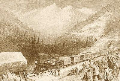 1862年美国联邦政府为了促进东西部的经济交流,通过了修建全美横贯铁路的法案。这条旨在加快美国西部开发的铁路分为东西两段,分别由联合太平洋铁路公司和中央太平洋铁路公司承包修建。