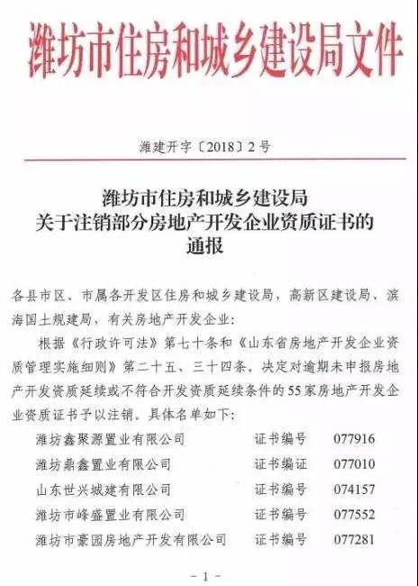 原标题:潍坊这55家开发商资质被注销