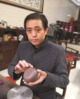 周赛英 1964年,出生于紫砂世家,从小就对紫砂产生浓厚的兴趣。1983年考入紫砂特艺班,师承“紫砂泰斗”顾景舟弟子——研究员级工艺美术大师吴亚平,传承“顾脉吴门”。2006年受聘于方圆堂茗壶制作中心,在与多位中青年实力派名家的交流中,借鉴和学习了许多新东西,给自己的作品注入了一股灵气。2009年,创办“紫英阁”,从艺30余载,在不断的探索和追求下逐渐形成自己刚中有柔与纤巧中含稳重的艺术风格。2012年,进修清华大学美术学院。许多作品多次获奖并刊登于各类艺术书刊,深受海内外藏家喜爱。