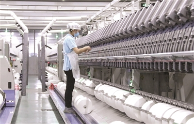 盛泽京奕集团先进的涡流纺织机。 刘 璐摄