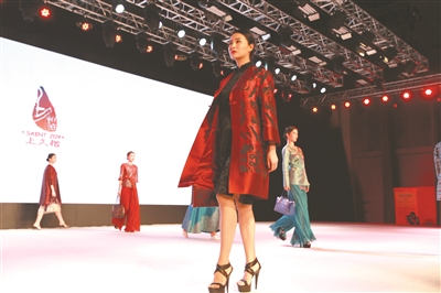 鼎盛丝绸上久楷时装模特展示宋锦时装。 尤晓源摄