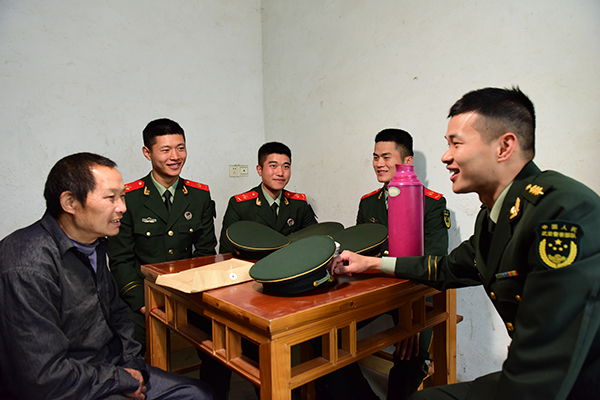 军爱民、民拥军,军民团结一家亲。每年,中队老兵退伍离队那天,十里八乡的群众自发来到中队门前红军路两旁,为退伍战士送行。