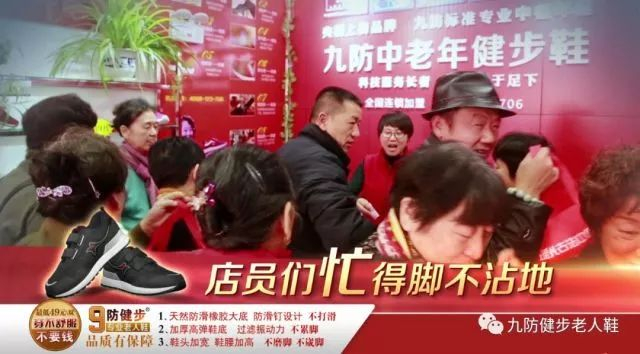 九防健步鞋先后登陆CCTV-1、2、3、7、9等频道及省市主流媒体,穿过的老人争相推荐,就这样一传十、十传百,九防健步鞋成了老年朋友圈的明星鞋,8000万老人都爱穿!