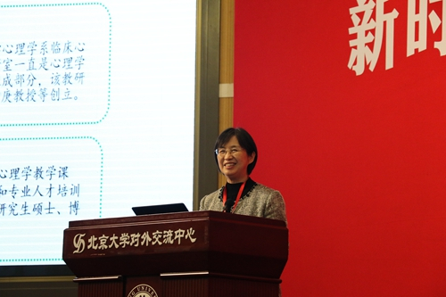 首先登场的是在临床心理学领域有很高威望的北大心理与认知科学学院临床心理学教研室主任、1978级院友钱铭怡教授。她在报告中阐述了临床心理学专业所处的大背景,介绍了临床心理学教研室在师资力量、教学研究、课程设置、专业人才培训等方面的一系列探索和特色,让与会者了解了与国际接轨的临床心理学研究生培养方案。