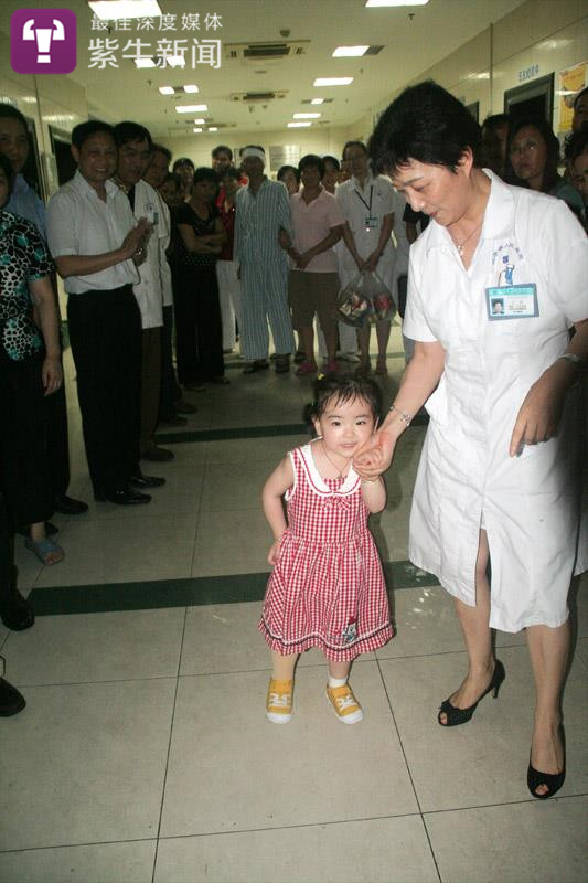 手术很成功。半个月后的2008年5月30日,当时记者作为扬子晚报特派记者在绵阳三院见到小馨懿,令人惊喜的是,她已经能够站立了起来,还与江苏省人民医院的医护人员互动,不得不让人惊叹于小生命的坚韧。