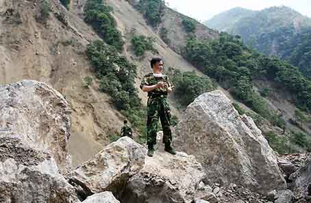 大约22时30分,我再次拨通师领导手机,得知由于余震不断,塌方、泥石流阻截,加之遭遇大雨,精疲力竭的官兵难以前行,尚未到达汶川,但距汶川还剩9公里。