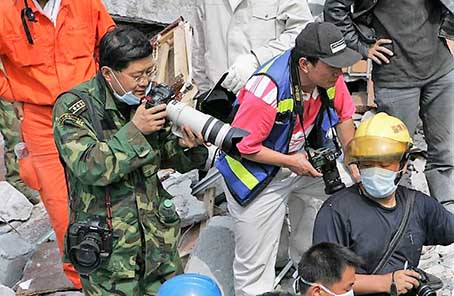 在我20多年的军事摄影记者生涯中,曾参加过许多灾难性报道,都没有像汶川地震这样悲壮、惨烈和震撼。它使我再一次经受了生与死的人生洗礼。