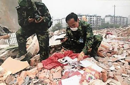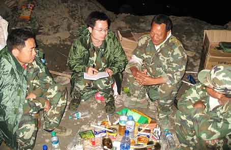 我立即与武警四川总队及武警驻川某师、水电、森林、交通、黄金等部队取得联系,从地震发生到13日凌晨四五点钟,我先后向总社传回十几条武警出动部队奔赴灾区一线抗震救灾的消息。