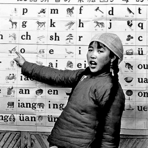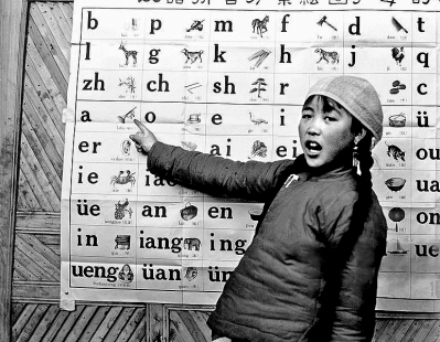 1960年,山西陵川的孩子学习汉语拼音。资料照片