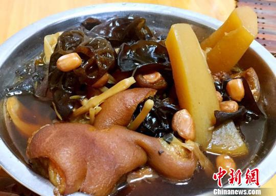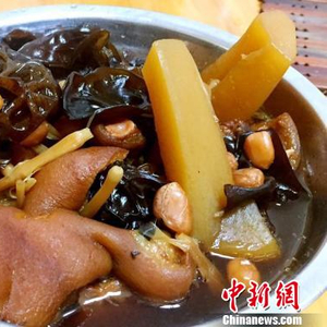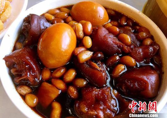据悉,酸醋菜式在台山其实有两款,加了木瓜、黄花菜、木耳的叫“木瓜猪脚醋”,而只有猪脚、花生、鸡蛋、老姜的叫“猪脚姜醋”。与广式猪脚姜不同的是,台山人加入花生将其煲成浓汤菜式,而并非裹酱粘稠的焖煮菜式。除了煮鸡酒、煲酸醋之外,台山人在孩子满月当天,还会用番薯、花生、黄糖等烹煮一锅薯酸粥,和煲熟染红的红鸡蛋一起派给亲朋好友。