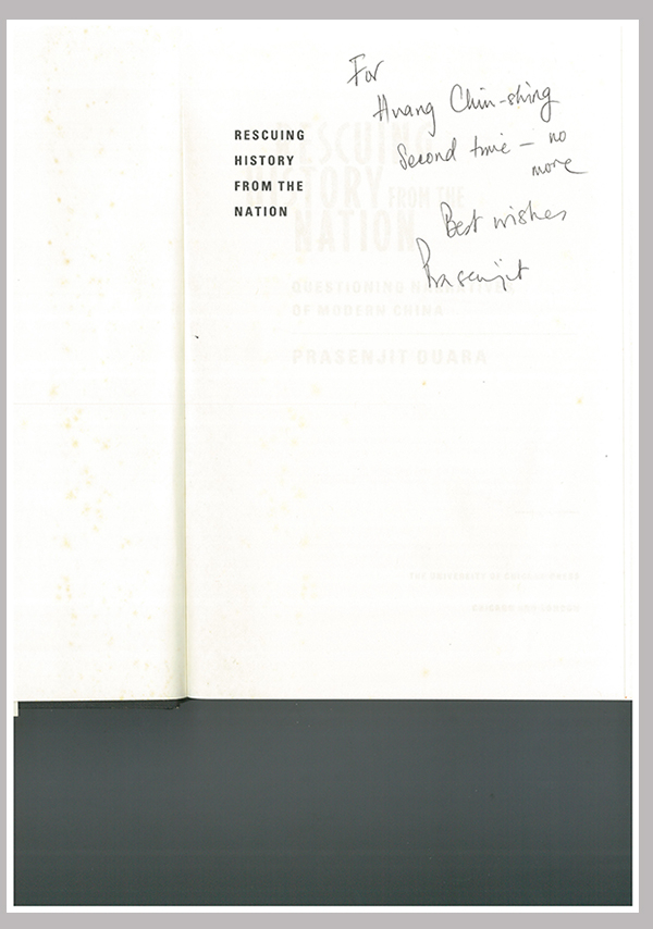 某次在大陆高校演讲,言及二十世纪晚期人文及社会科学历史意识的再兴,有位研究生突然举手提问,如何评定“杜赞奇”(Prasenjit Duara,1950-)?我径自回答:“他是我的同学!” 在哈佛读书的时候,我最密切的学侣便是杜赞奇,常常抬杠,东西南北无所不谈;但同甘不共苦。他深受业师孔飞力(Philip Kuhn, 1933-2016)教授的喜爱,我却是不够格的学生。 杜赞奇 杜赞奇和我虽是同窗,但并不同门。我的老师是史华慈(Benjamin Schwartz,1916-1999),乃是比较思想史的名家,而孔飞力教授则以研究中国近代社会史著名。以今日回溯看来,杜赞奇实属他最出色的弟子,在学界南征北战,屡见奇功。例如,他毕业后在一个小人文学院教书,不数年旋即转至中部学术重镇芝加哥大学任教。之后,又被新加坡国立大学礼聘,出任人文及社会科学的总策划,备受重用。 学业上,我和杜赞奇经常互助彼此语言的需要:他费心改了我博士论文的英文,而我遂对“中国农村惯行调查”略有所悉。除此之外,杜赞奇和我治学迥然不同调。平日,我心仪英美的分析哲学(哈佛乃执分析哲学牛耳),故喜欢往哲学系跑。他因随孔教授从芝加哥大学转学过来,已经学有根柢。虽然我们两人都喜欢人类学、社会学,却是两条没有交集的平行线。我念的是当时正统的社会科学,他涉猎的却是明日新兴的异端之学,例如傅柯(Michel Foucault, 1926-1984)、哈贝马斯(Jurgen Habermas,1929-)、布尔迪厄(Pierre Bourdieu,1930-2002)等。他不时诚恳地劝我要识时务,我却执一不迁,负隅顽抗。后来的发展,果然证明杜赞奇的观点是正确的。1980年之后,这些名家的理论便以惊涛骇浪之姿,淹没了史学的园地。 有回,他已到芝加哥大学任教,邀我前去讲演。事后还刻意带我去逛芝大书店,指着侯米巴巴(Homi K.Bhabha,1949-)“后殖民理论”(post-colonialism)的书,要我多加留意。可惜后来我都没跟上这些潮流,以致研究相对古板、落伍。 在哈佛念书时,因杜赞奇,我复结识了包筠雅(Cynthia Brokaw),她待人热诚且和善。偶尔我们三个人一起聊天、论学,还煮东西吃(杜赞奇善煮咖哩)。包筠雅从博士论文改写成书的《功过格》(The Ledgers of Merit and Demerit: Social Change and Moral Order in Late Imperial China,1991)一书,乃是继日本学者酒井忠夫(1912-2010)之后的力作,甚受好评,而后她又致力于中国书籍和印刷史的开发,遂成此一领域的开路先锋,绝非西方“单书教授”(one book professor)可以比拟。 《文化、权力与国家:1900-1942年的华北农村》 谈到以博士论文改写成书扬名,杜赞奇的《文化、权力与国家:1900-1942年的华北农村》(Culture, Power, and the State: Rural North China, 1900-1942,1988),绝对值得大书特书。他初试啼声即一鸣惊人,不仅获得美国历史学会的“费正清奖”(John Fairbank Prize,1989),而且获颁亚洲研究协会“赖文森奖”(Joseph Levenson Prize, 1990)。近史所有位同事甚至把他的“文化网络”(cultural nexus)一词时刻挂在嘴边,其受欢迎可见一斑。 以学术的“场域”(布尔迪厄的专用术语)视之,杜赞奇虽功成名就,却屡次企图回归哈佛母校,功亏一篑。浅见所及,乃是“常春藤联盟”(Ivy League)的史学倾向于经验、实证的探讨所致。即使他的业师孔飞力也只言及“韦伯”(Max Weber, 1864-1920)而止,不越雷池半步;而杜赞奇所擅长的概念思辨的进路,却不见得能全盘兜售。职是之故,他的声名在美国社会科学界恐怕远盛于中国史学圈内。所以他能在芝大大放异彩,和今日受杜克大学(Duke University,有人谓之南部“哈佛”)的延揽重用,盖可理解,皆因此二名校均以概念解析取胜。 《从民族国家拯救历史》 《从民族国家拯救历史》杜赞奇赠言 1995年,他的第二本书《从民族国家拯救历史》(Rescuing History from the Nation: Questioning Narratives of Modern China,1995),乃受安德森(Benedict Anderson, 1936-2015)《想象的共同体》(Imagined Communities: Reflections on the Origin and Spread of Nationalism,1983)的启示,拟将史学从民族主义中解救出来,又异常叫座,在华文学界尤其流行。而后,为了研究伪“满洲国”,杜赞奇还特别来台湾访问王德威兄的母亲——姜允中女士。按,姜女士来台后,一手苦心发扬山东王善人始创的“万国道德总会”,成绩斐然,有目共睹。 之后,他的研究就非“中国史”可以限制了。他到新加坡国立大学之后,眼界愈形开阔,从中国放大至全亚洲,学术议题也扩充到全球化、环境史,况之其代表作大多已有中文译本,是故在华文学圈,尤其在近代史领域亦占有一席之地了! 居间,我也曾经受其感召,力图振作,跟上时潮,遂挪“前现代”的手法治理“后现代”的事业。花了近三年一本一本啃过傅柯这批先知的文本,去探究“后现代主义”对史学实践的冲击。书成之后,赶紧向杜兄报告已超英赶美了,但他冷冷地回答:“‘后现代’已被超越,不再流行了!”令我顿时坠入万丈深渊,为之气馁不已,盖有“乃觉一个世代”之叹! 除上述之外,我还有三事惹得杜赞奇不悦。其一,之前,他一有大著问世,便会惠赐我一册,分享成果。可是由于他声名大噪,他的书一旦被学生或同仁借去,经常长去不还。有朝一日,他补上复本,上面竟写着:“下不为例!”(Second time—no more)。其二,有回约他一起共进午餐,由于年纪大,一时失忆,自己搭了高铁,跑去南部演讲。在车上接了他气呼呼的电话,竟然放他鸽子!最后,2012年“中央研究院”举办的“国际汉学会议”,晚宴竟然忘记备酒,他颇不以为然;宴席结束之后,