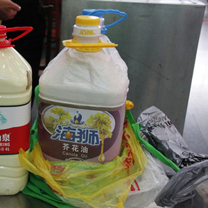 5月13日下午3时50分许,在上海火车站南进厅3号安检通道处,安检员从电子显示屏上,看到一只旅行包中有两瓶可疑物品,当即询问主人包内装有何物。一名中年女旅客一边回答是菜籽油,一边快速拿起行李准备离开。安检民警王国平立即上前制止,要求该旅客开包接受安全检查。打开旅行包,拨开一叠衣服,露出一瓶食用芥花油桶及一瓶矿泉水桶。老王要求该女子拿起花生油桶喝上一口,接受液态物品安全检查。只见女子无奈地拧开瓶盖,一阵刺鼻异味扑鼻而来,立即引起民警老王的警觉。“瓶子里灌的是什么?是不是涂料?”在民警的质疑下,女子承认瓶内确实装的是涂料。
