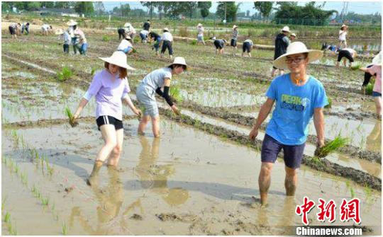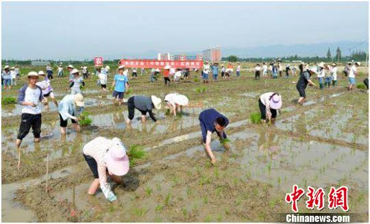 中新网成都5月14日(记者 贺劭清)记者14日从四川农业大学获悉,该校农学专业2015级学生近日在老师的带领下前往四川农业大学现代农业研发基地(崇州)开展了农学专业实践教学重要环节——插秧。