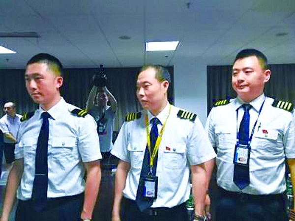 图说:英雄机长刘传健(中)