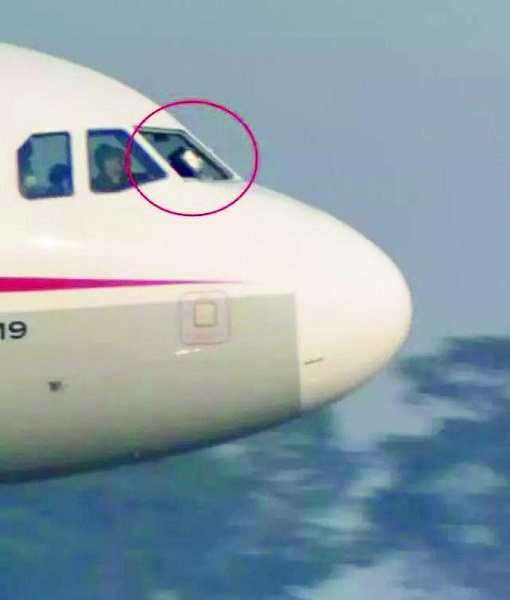 图说:驾驶舱右座前风挡玻璃突然破裂 网络图(下同)