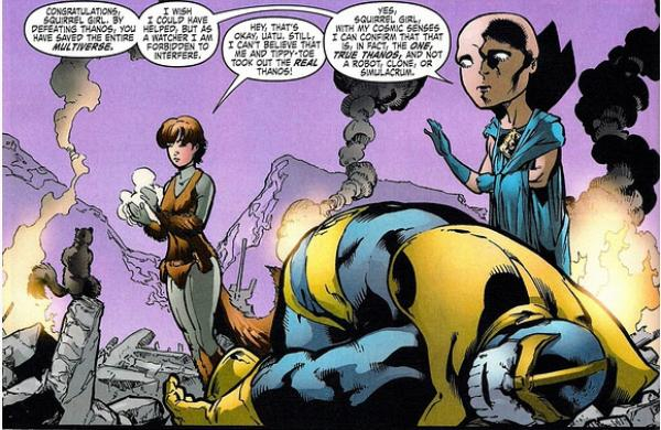无敌的灭霸,虽然有过败仗,但从未败得很惨,算是败得很有面子。除了遇上这位,漫威宇宙最强之人——松鼠女。