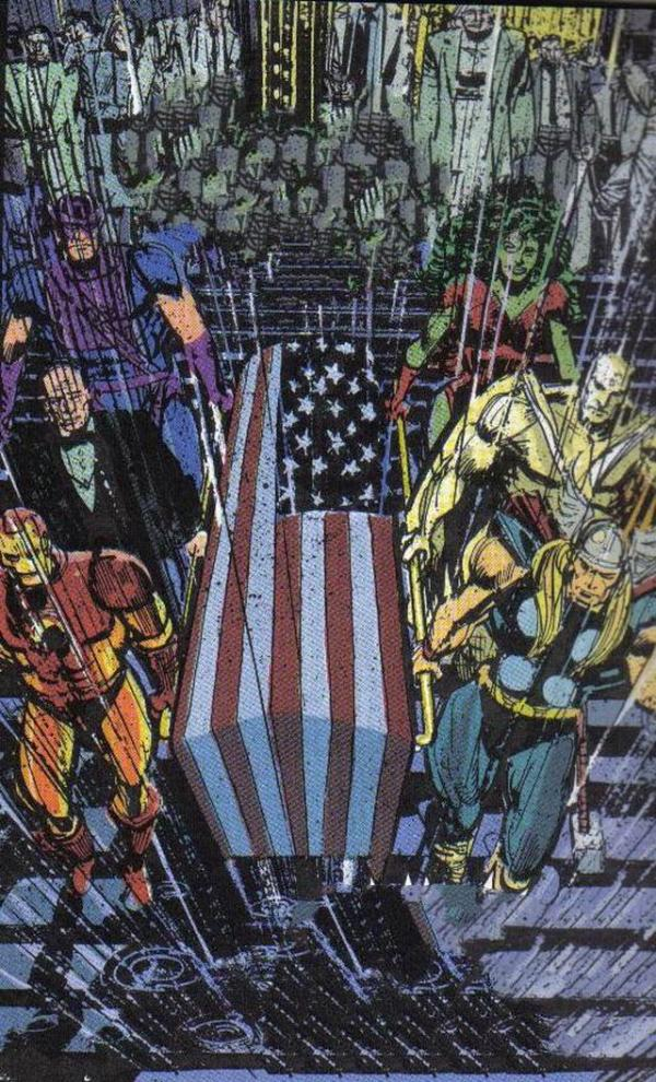 就像美国队长,在漫画中“死”过好几次,虽然最终都以各种方式“回归”,但在队长每次的阵亡之中,都显得足够轰轰烈烈。最著名的当属《内战》中,队长死在了爱人莎拉·卡特的抢下(被红骷髅操控),让漫威主宇宙616迎来了一个非常大的转折点。