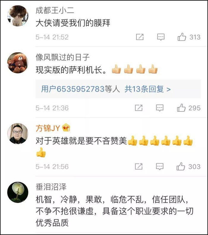 无数网友为英雄机长点赞,为英雄机组鼓掌!