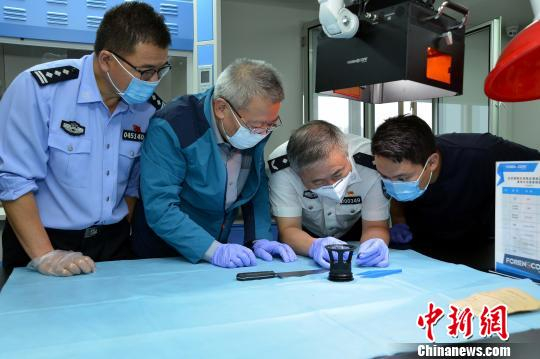 图为:刑侦专家对物证进行会诊 浙江省海宁市公安局供图
