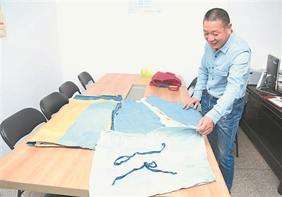 王世清和他收藏的清代老衣物。金 琎摄