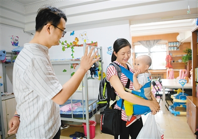 接近中午时分,除了昨晚发烧的熙熙(化名)转入医院治疗外,其他几名早上去医院检查的患儿也陆续回到家园。王晓娟准备带着航航回富平的家里了,“家里还有个老大等着下午放学去接呢,周末下午再过来准备周一复查。”身体瘦弱的她胸前抱着儿子,身后背着一个大包。临出门,她和儿子向每个人一一道别。