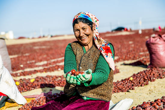 微笑的和田枣农们。孙磊/摄