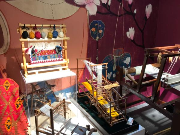 上海博物馆教育部主任陈曾路告诉澎湃新闻,展览是基于上海博物馆已跟踪五六年的中国百余种民间工艺的“艺匠古今”项目,在此期间进行了自创绘本、纪录片等,在搜集完资料后,请了专业的画室和写手来呈现故事,“希望从一个故事的角度去把民间工艺,最好玩最有意思的一方面呈现给观众。观众可以看到很多有意思的东西,例如,木版印刷、苏扇的制作过程等,而在机械纺织展示区,则可以发现土耳其在纺织上的做法跟中国缂丝的做法是一样的。”